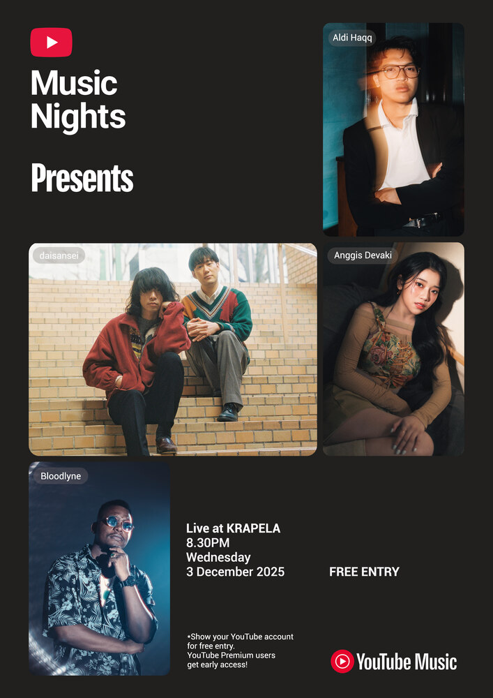 YouTube Music Nights 2025 Jakarta,Indonesia SCHEDULE 2025/12/03(水) 20:30 - 23:30 Live at KRAPELA Wednesday, 3 December 2025, 8:30PM Free Entry Anggis Devaki Bloodlyne daisansei Aldi Haqq URLをコピーする 報告する